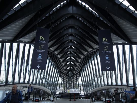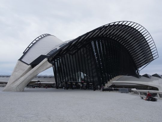 リヨンからマルセイユへの移動日。移動は昼からだったが、観光はできず。それは SNCF(国鉄)の OUIGO(ウイゴ)という格安 TGV に乗るため、サン=テグジュペリ空港まで移動する必要があったからである。OUIGO は TGV の荷物置き場を減らし、食堂車もなし、2階建て車両に座席を寿司詰めにし、チケットは自宅プリントのみで、なおかつ郊外の駅から発着させて超格安の値段で提供するサービスらしい。パリならディズニーランドのあるマルヌ=ラ=ヴァレ、リヨンなら空港のあるサン=テグジュペリである。その分値段は超破格で、リヨンからマルセイユまでたったの10ユーロである。ただパルデュー駅からサン=テグジュペリ空港まで急行トラムに乗る必要があってこれは16ユーロぐらいするので、合計すると26ユーロぐらいになるのだが、それでも十分安い。ただ、大きな荷物は5ユーロの追加料金がかかる。車掌は回ってこず、駅でチケットと荷物のチェックがある。サン=テグジュペリ空港に直結されたTGV駅はサンチャゴ・カラトラバの設計だそう。彼の建築は初めて見た。