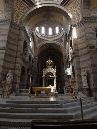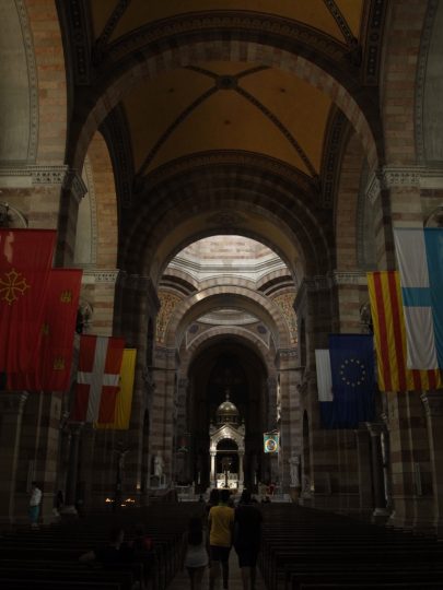 美術館を後にして、サン=ローラン教会の方に歩き、名前はわからないが20世紀文化財扱いにされてあるアパルトマンを見ながら、カテドラル・ドゥ・ラ・マジョール(La cathédrale de la Major)へ。デュマの『モンテ・クリスト伯』の舞台にもなった場所らしく、関連スポットの場所が一覧となった地図が置かれているのが面白い。ところで作詞家の松本隆氏のナイアガラ関係におけるペンネーム「江戸門弾鉄」は、この小説の主人公の名前から来ていることを今更ながら知る。学がないと洒落がわからないんだよなあ。