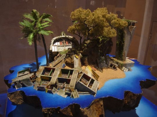 そのまま旧慈善院(? La Vieille Charité)の方に歩き、妻が事前に(ダジャレじゃないよ)調べていたサントン人形屋を物色。待ってても終わる気配がないので周辺を散歩するが観光客向けの店しかない。もちろん我々も観光客なのだが、ヨーロッパの「観光客向けの店」はどうしてこんなにバカっぽい物しか売っていないのだろうか。もう少しあるでしょう、地域の特産品とか質の高い工芸品とか。地名書けば売れると思ったら大間違いだぞ、と言いたくなるが、買う馬鹿もいるのだろうな。