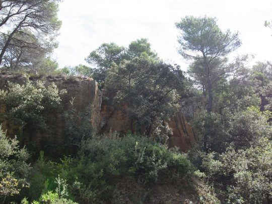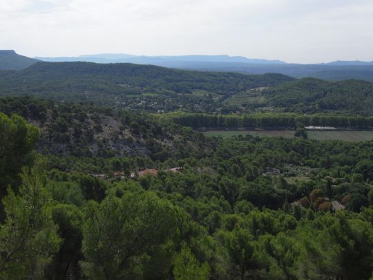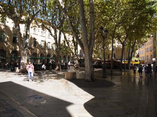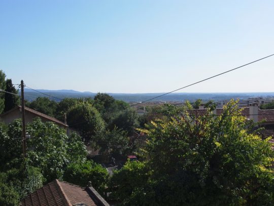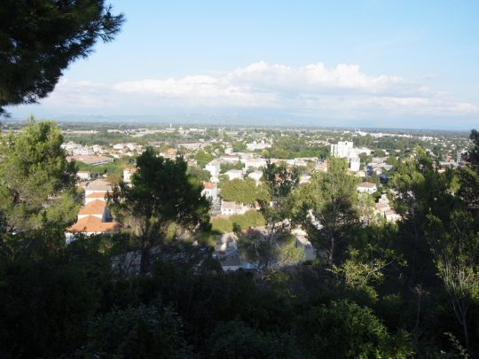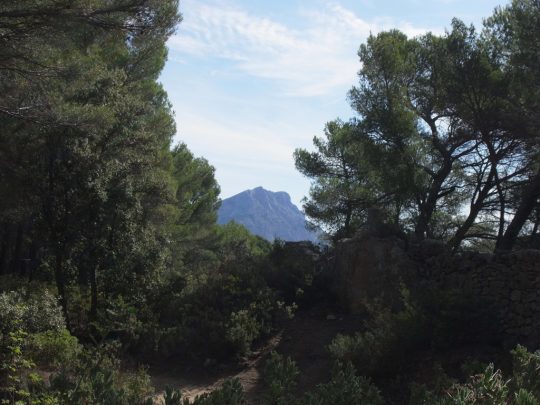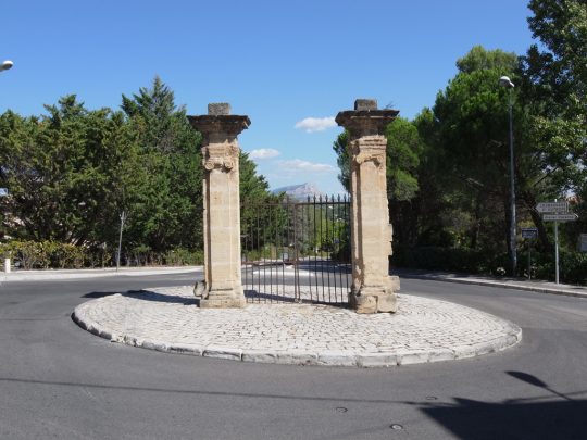 サント=ヴィクトワール山を描いた場所(Terrain des peintres)は、アトリエから20分ほど丘を上がったところにある。数年前のセザンヌ没後100年の際に整備されたらしく、周りは新興住宅地、そこだけ散策路と見晴台になっている。ここにはテロリストがおらずホッとしたが、なぜか一番いい場所で雑誌を読み続けているおばさんがおり、何もここで読まなくても……と思うのだが、観光客の邪魔をするのが趣味なのか、セザンヌの気持ちで雑誌を読むのが趣味なのか、どっちかであろう。誰がどこで何をしようと勝手だから、我々が正直心の中で「おばさん、めっちゃ邪魔や……」と思っても詮無きことであるが。あと、植栽に問題があると思う。