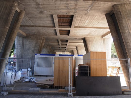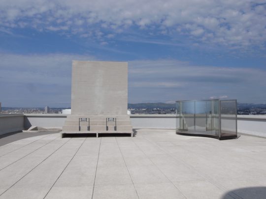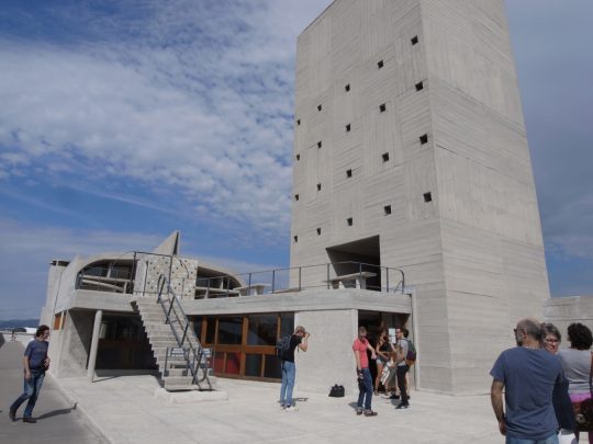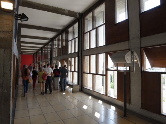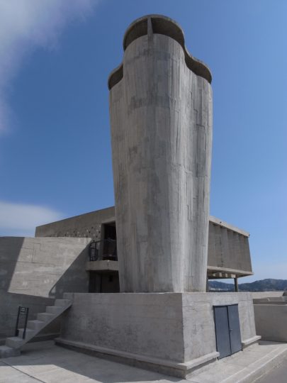ツアー後、せっかくなのでユニテの一室をホテルにしているところのロビーでコーヒーを飲んだが、テラスに座っていると彼がコンクリートの建築家だったのだということが改めて思い出された。そういえば彼はオーギュスト・ペレの弟子だった。建築家諸氏ならこういうところに勘が働いてすぐ気がつくのだろうが、このコンクリート的造形感覚とでもいうべきものは、彼の数多の建築的キャッチフレーズ以上に、彼の性質を体現しているように感じられる。私は専門家ではないからこれが技術的にいいのかどうかはわからないが、とにかくこれはユニークだと思う。