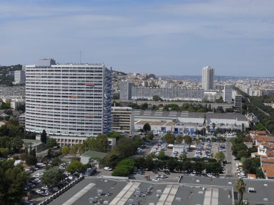 今日は旅の最終地点であるニースに移動するのだが、昼過ぎにマルセイユのユニテ・ダビタシオンのツアーを申し込んでいたので朝から移動。懸念事項はスーツケースで、まさかガラガラ引きずりながらツアーに参加することはできないだろうと思うので、どこか預けるところが必要なのだが、フランスの駅はほとんどコインロッカーが無い。スイスには日本のようにたくさんのロッカーがあったが、テロ対策もあってかこの国には無いのが普通である。ただ、SNCFのサイトで調べたところマルセイユの駅には有人ロッカーがあるらしいのでそこが頼みの綱で行ってみた。無事に駅でロッカーの入口を発見し、さあ預けようと入ったところ、X線検査のコンベアーのところで係員に止められ、「C’est complet !(満員!)」と突き返されてしまった。だったら増設しようとか考えないのかよ。だからお前の国は◯◯なんだ。と思いながら路頭に迷う。